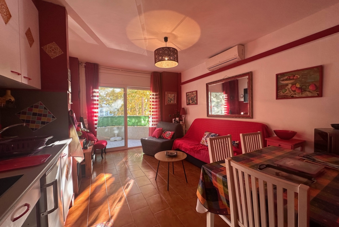 Ubicat a la primera planta d´un edifici recent i segur, compta amb un rebedor que dóna pas a una zona de dormitori i un bany, seguit d´una sala d´estar principal amb cuina equipada, taula de menjador i sala d´estar. També té accés a la terrassa orientada al sud-oest.