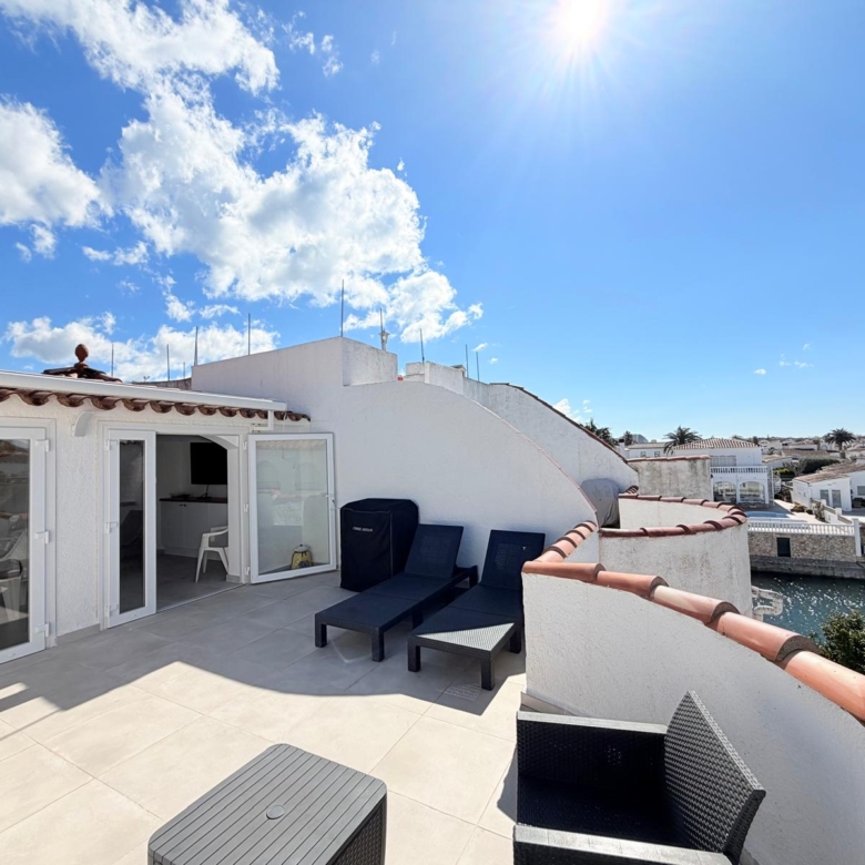 Descobreix aquesta magnífica vila totalment reformada, idealment situada en un dels canals originals d’Empuriabrava i amb un amarratge privat de 14 metres, una ubicació privilegiada per als amants de la navegació i els amants de la vida a la vora del mar. Construïda en una parcel·la d’aproximadament 500 m², amb 200 m² de superfície habitable, aquesta propietat combina elegància, confort i una renovació d’alta qualitat en un entorn tranquil i sol·licitat.