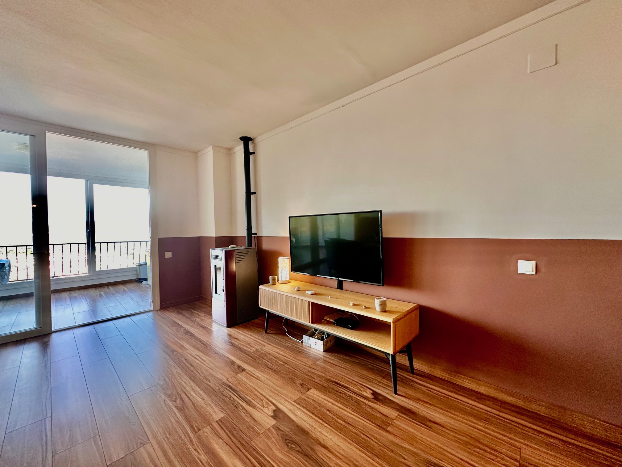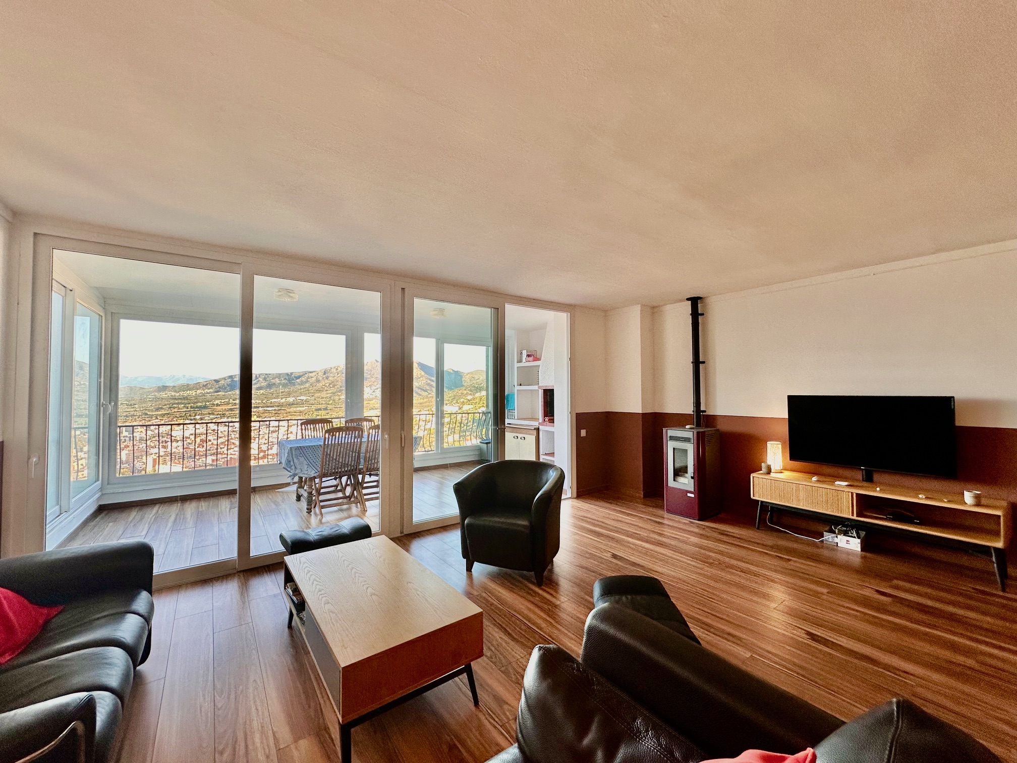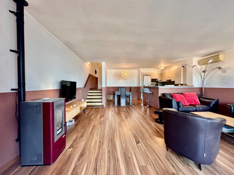 Además, este apartamento dispone de aire acondicionado reversible, ventanas de aluminio con doble cristal, una estufa de pellets y una plaza de aparcamiento privada en la parte superior de la residencia y un trastero.