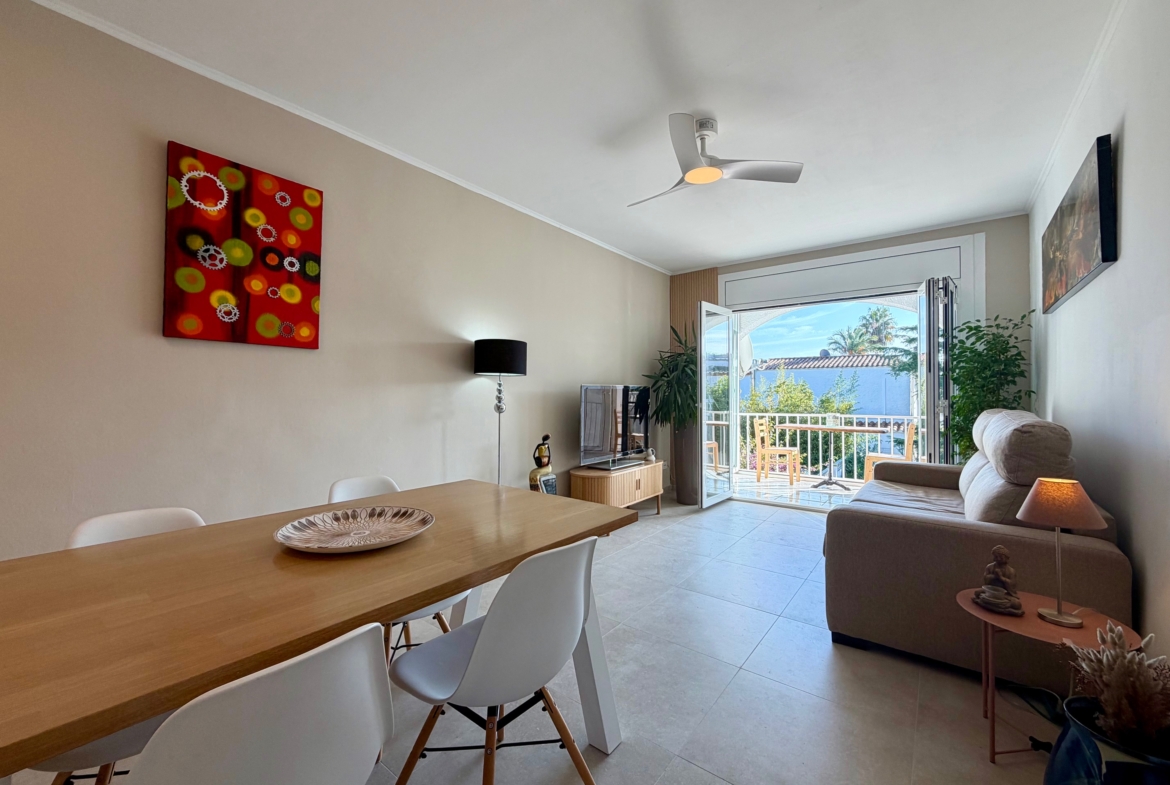Descubra este precioso apartamento de 61 m², totalmente reformado, que incluye una terraza de 10 m² orientada al sur. Ubicado en la primera planta de un pequeño edificio de solo cuatro apartamentos, consta de un recibidor que da acceso al salón principal, que incluye una cocina totalmente equipada a estrenar, un comedor y una sala de estar con acceso a una terraza cubierta de 11 m². La zona de noche cuenta con dos amplios dormitorios con armarios empotrados. También hay un baño nuevo y moderno con ducha a ras de suelo y WC independiente.