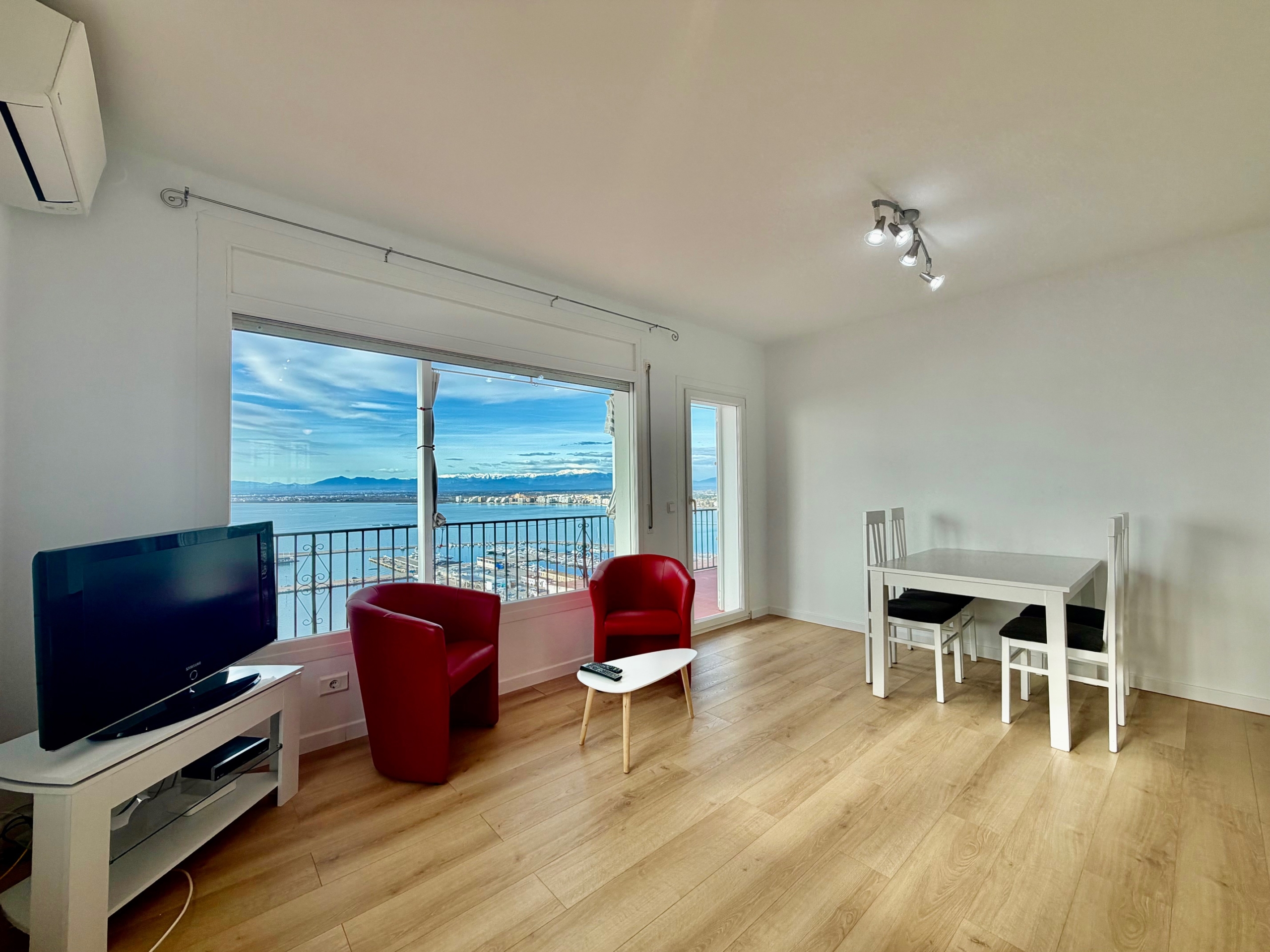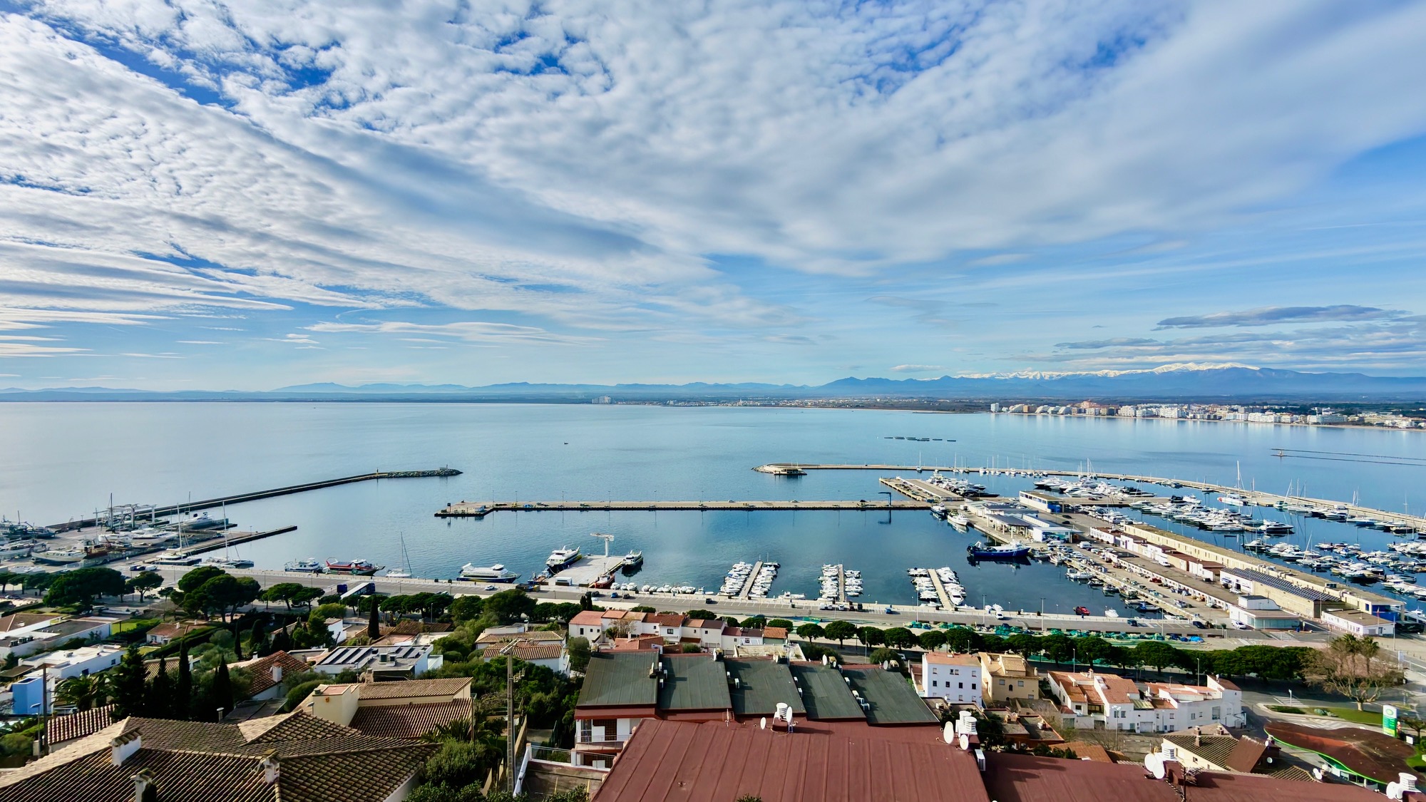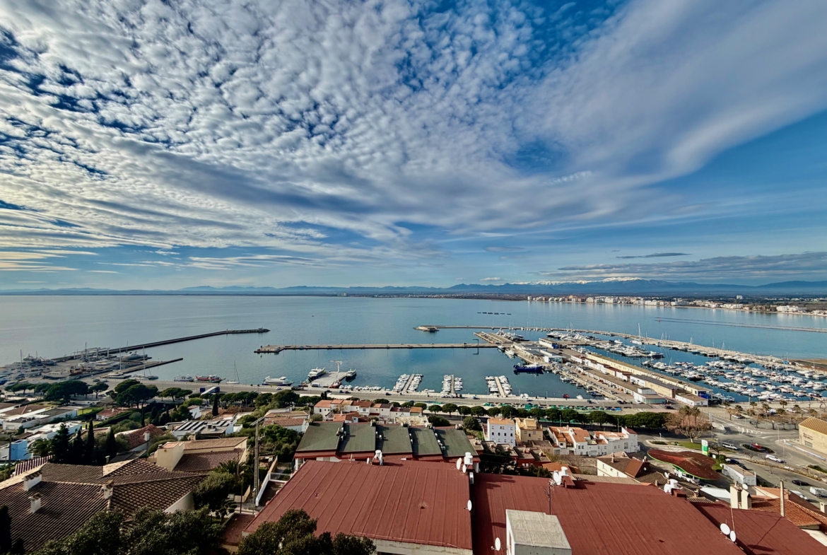 Situado en Puig Rom, una de las zonas más cotizadas de Roses, descubra este magnífico apartamento de 98 m², con 25 m² de terraza, que ofrece unas vistas panorámicas excepcionales al mar, al puerto, a la bahía de Roses y a las montañas.