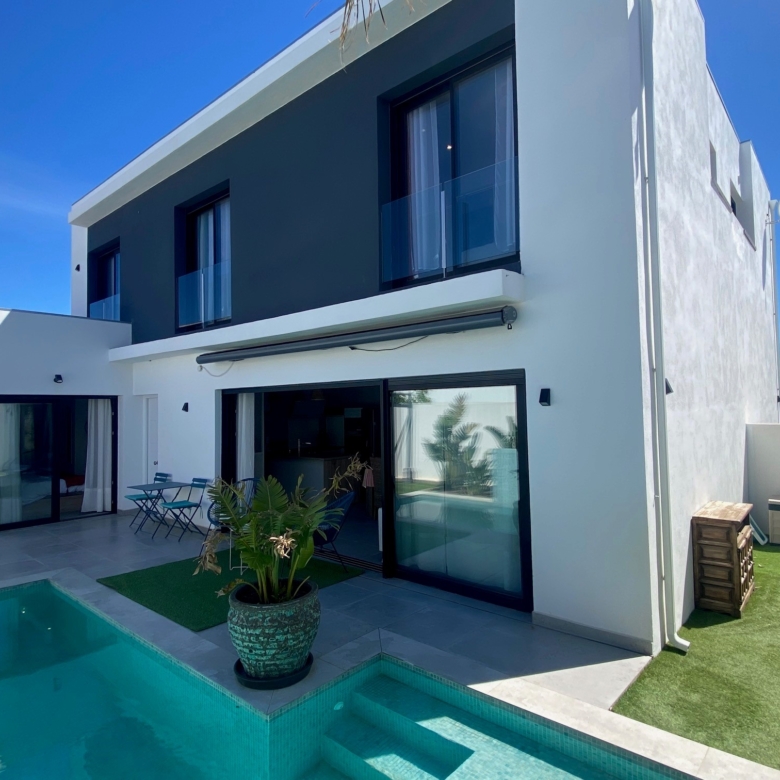 Esta sublime casa recientemente reformada tiene una superficie construida de 227m2 en una parcela de 600m2. Consta de un gran sala principal con salón, comedor y cocina americana moderna totalmente equipada, también en la planta baja encontramos una gran suite con armarios empotrados y baño. En la planta de arriba hay dos dormitorios con baño compartido, una gran suite con vestidor, baño y acceso a la terraza.