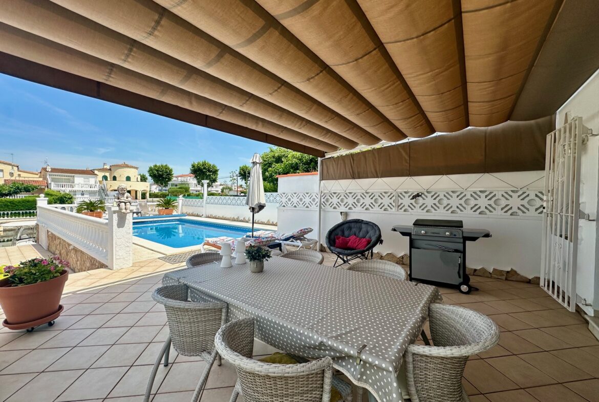Bonita casa típica estilo Empuriabrava con un amarre de 9,5m, una piscina y un garaje cerrado.