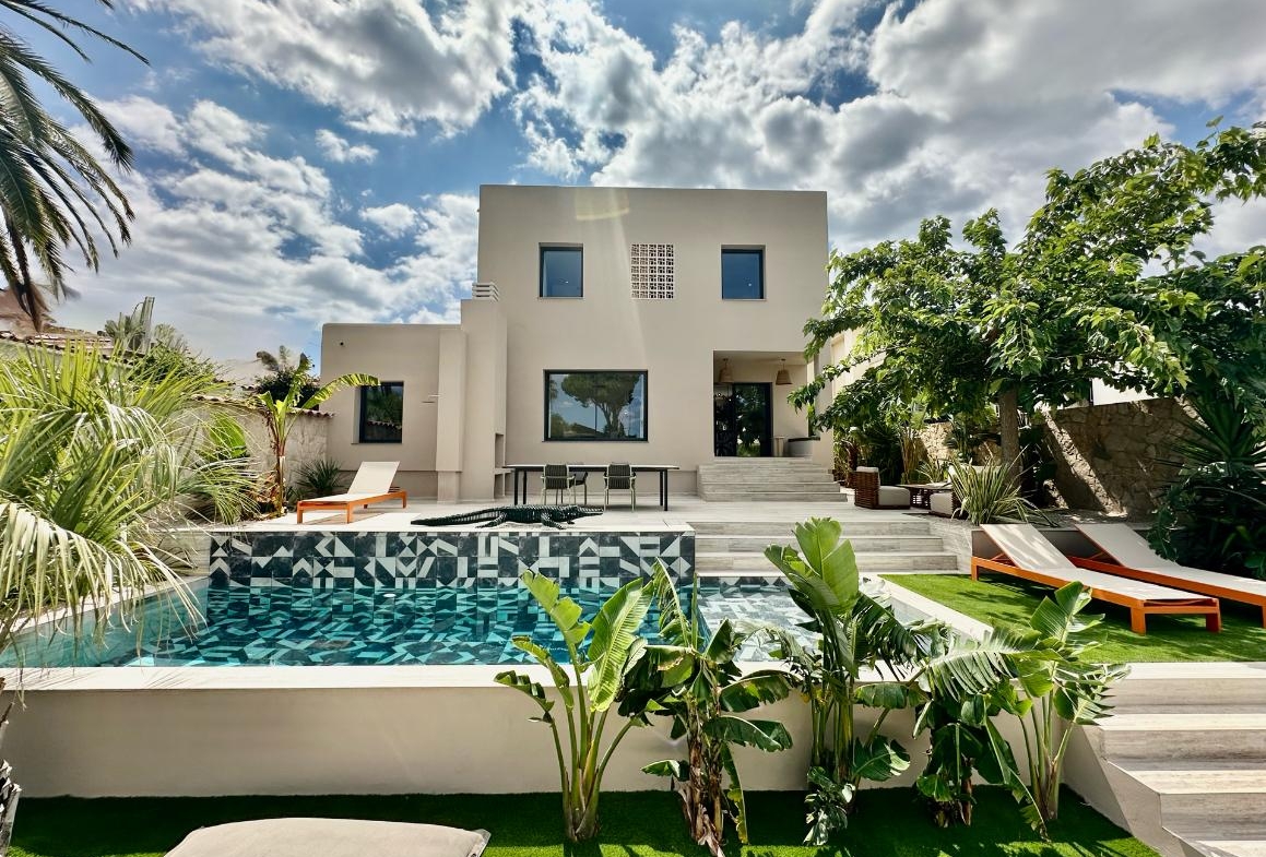 La casa cuenta con un diseño exclusivo que combina estética moderna y funcionalidad, creando un espacio único y sofisticado. Tiene un total de 4 habitaciones y 4 baños, brindando espacio y privacidad para toda la familia o invitados. En la planta baja, encontrarás un amplio dormitorio con baño en suite, perfecto para invitados o como suite principal. El salón-comedor, con grandes ventanales, se abre directamente a la terraza, la piscina y el amarre, creando un espacio ideal para disfrutar del sol, el mar y momentos inolvidables.