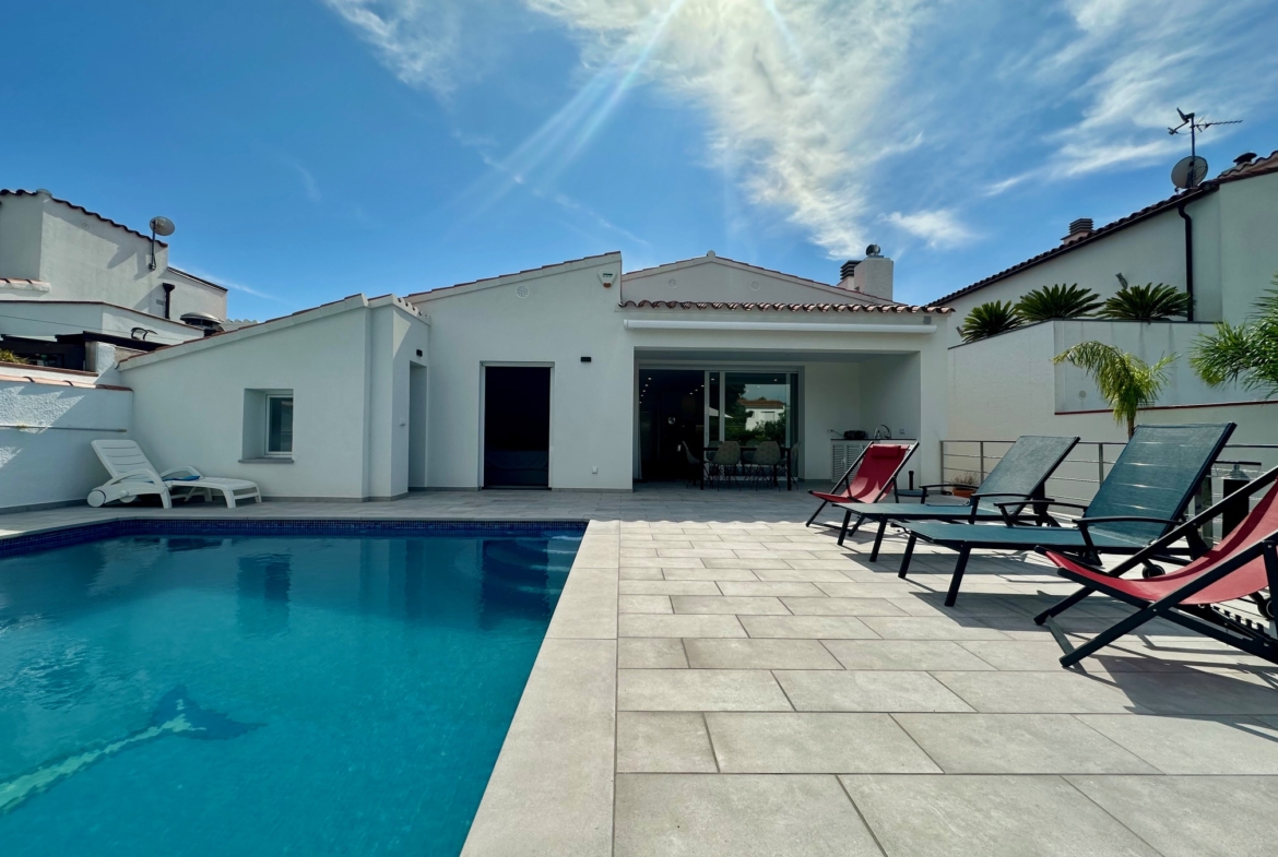 En una zona tranquila y muy codiciada de Empuriabrava, esta magnífica villa construida sobre una parcela de 600 m² con 183 m2 construidos, ofrece un entorno excepcional que combina confort moderno, elegancia y acceso directo al mar gracias a su amarre privado de 15 metros. Completamente renovada con buen gusto, la casa cuenta con un aislamiento exterior de alto rendimiento y acabados de alta calidad, lo que la convierte en una propiedad llave en mano, ideal como primera o segunda residencia.