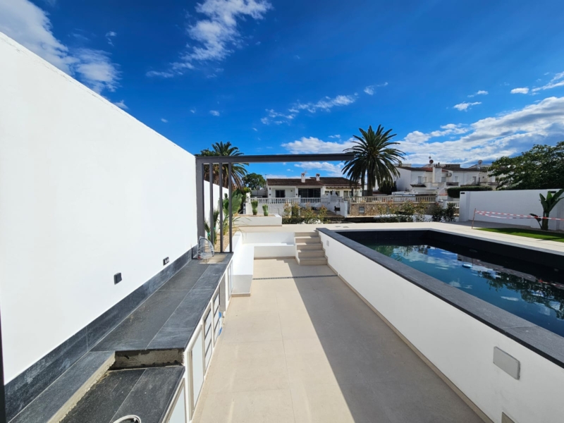 Casa con amarre completamente renovada, piscina y amarre. Orientación Sud.
