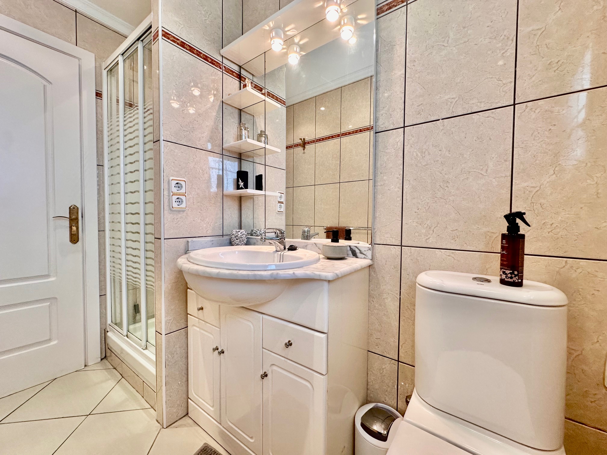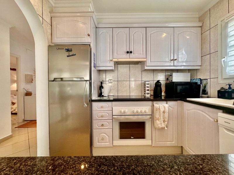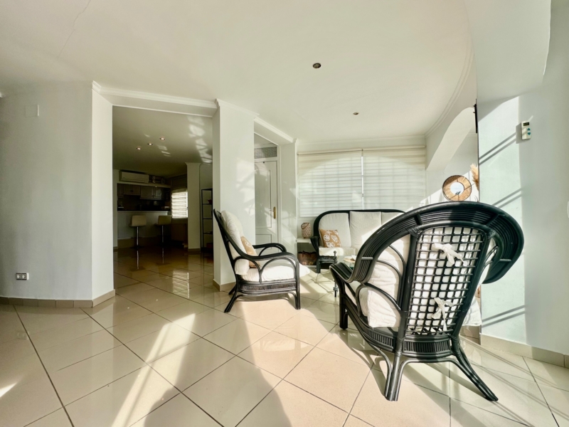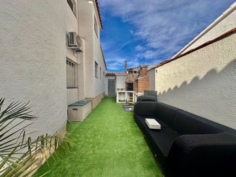 El interior consta de un bonito y luminoso salón con acceso directo a la terraza y una cocina americana totalmente equipada. La casa tiene tres dormitorios, dos de ellos en la planta baja, un cuarto de baño y dos aseos, lo que ofrece todo el confort necesario para recibir a familiares y amigos.