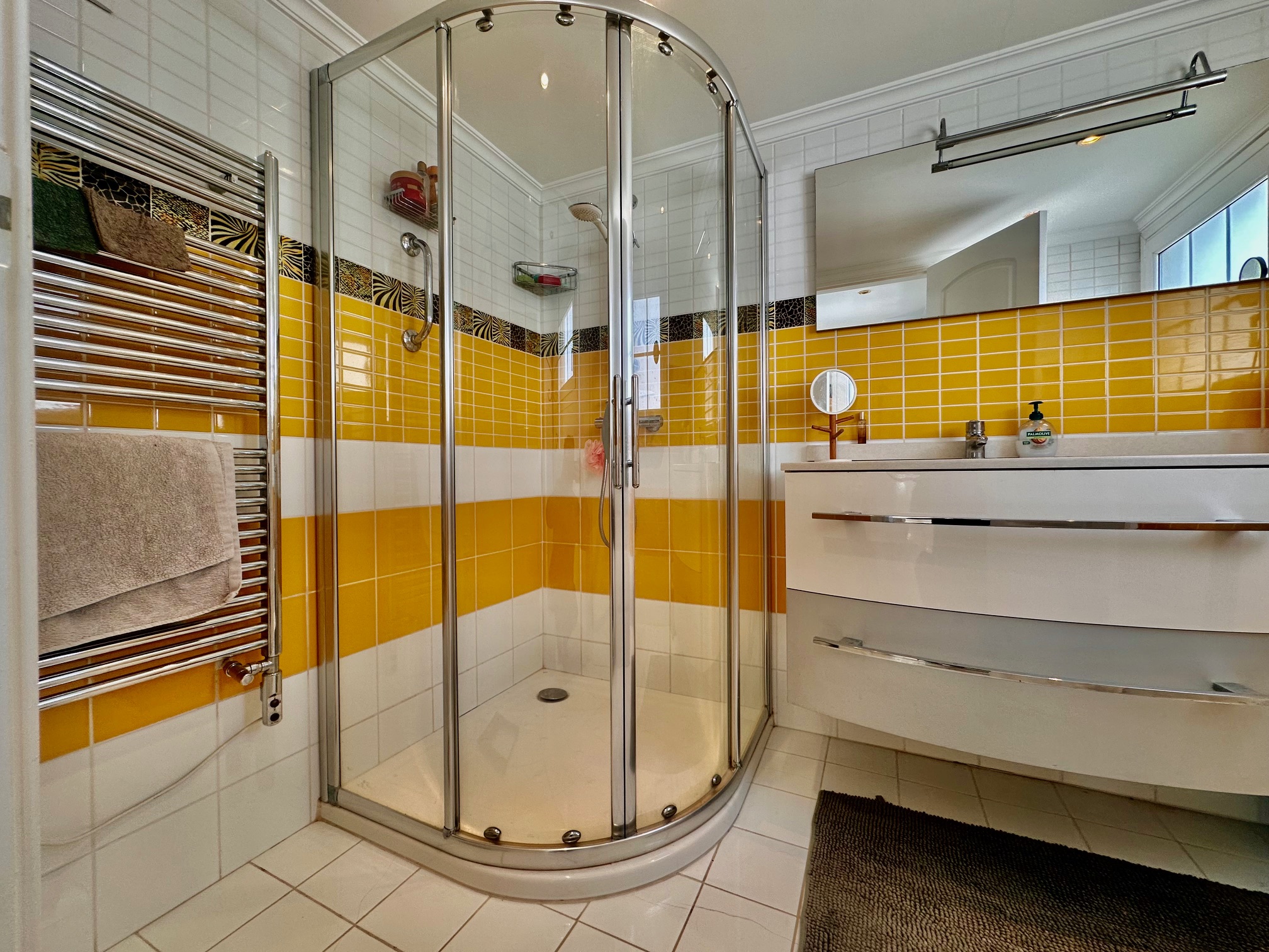 Construida en un terreno muy bien cuidado, la propiedad cuenta con un amarre privado de 11 metros, ideal para los amantes de la navegación. En el exterior, podrá disfrutar de un agradable patio privado con capacidad para un vehículo, así como de un garaje cerrado. La soleada terraza, orientada al sur, da a una piscina privada rodeada de zonas ajardinadas, perfectas para relajarse y comer al aire libre.