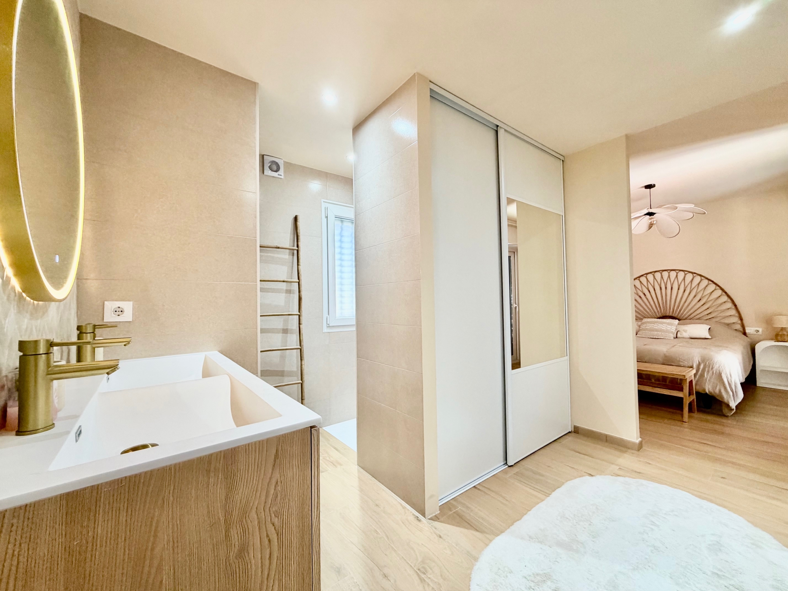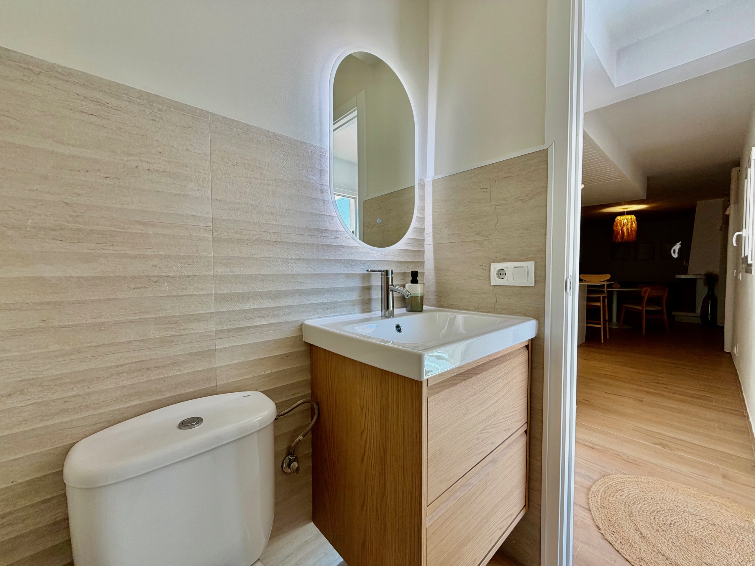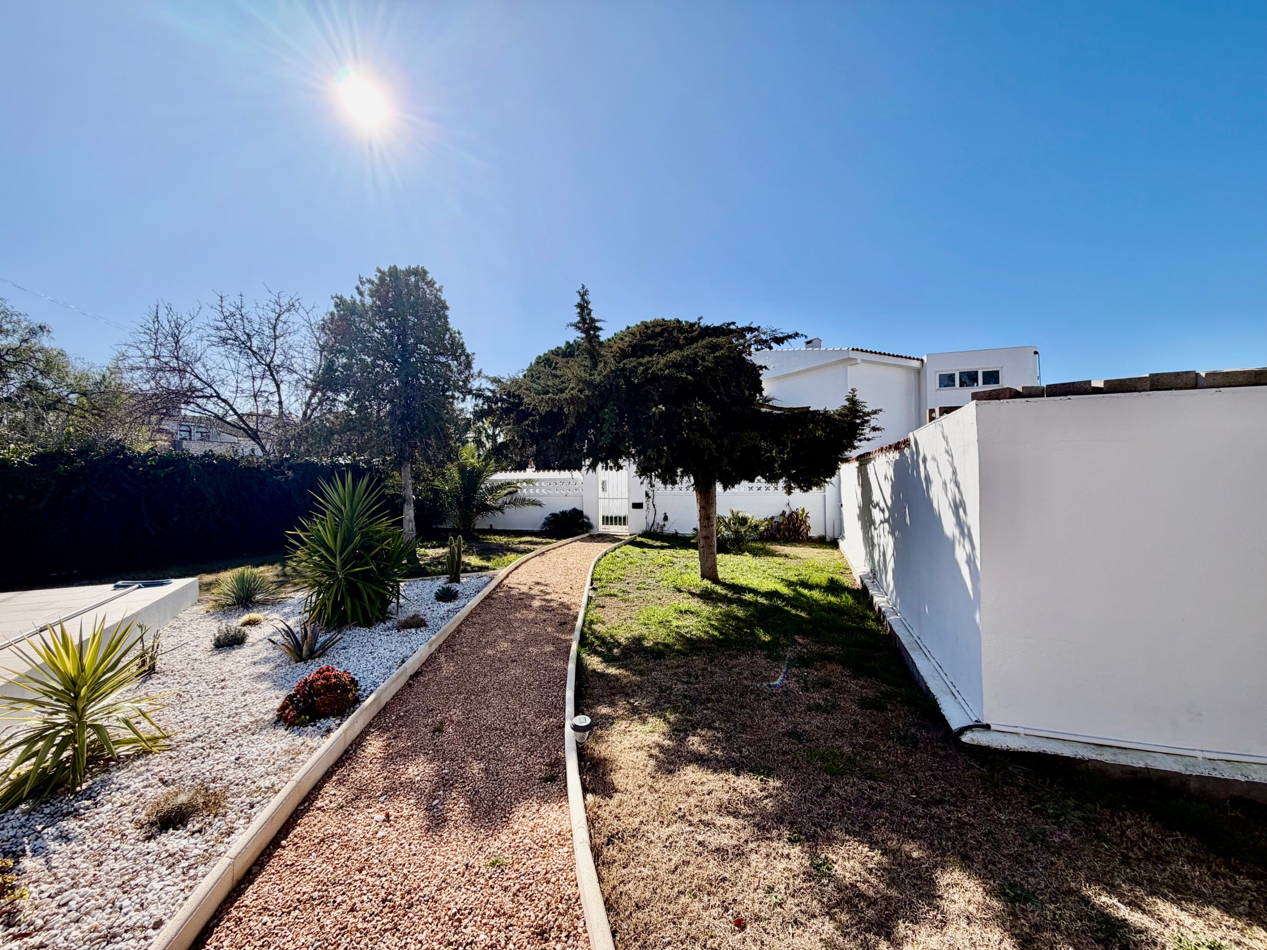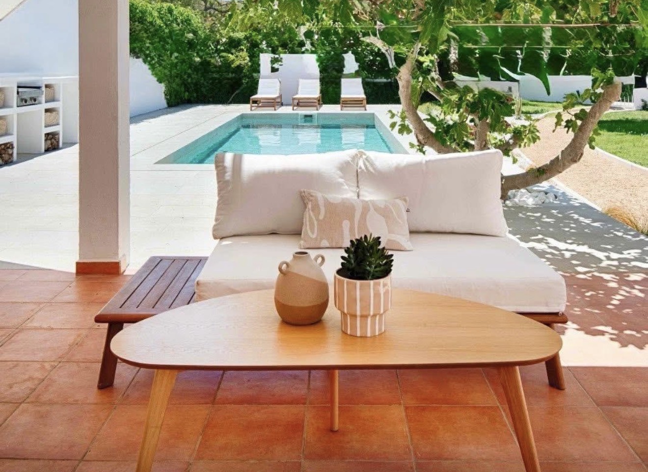 El interior cautiva gracias a la abundante luz natural que inunda cada estancia. La casa cuenta con tres cómodos dormitorios y tres baños completos, incluyendo una suite principal con baño en suite, terraza privada y acceso directo a la piscina, un remanso de paz para la relajación. Un aseo independiente completa la distribución para mayor comodidad.