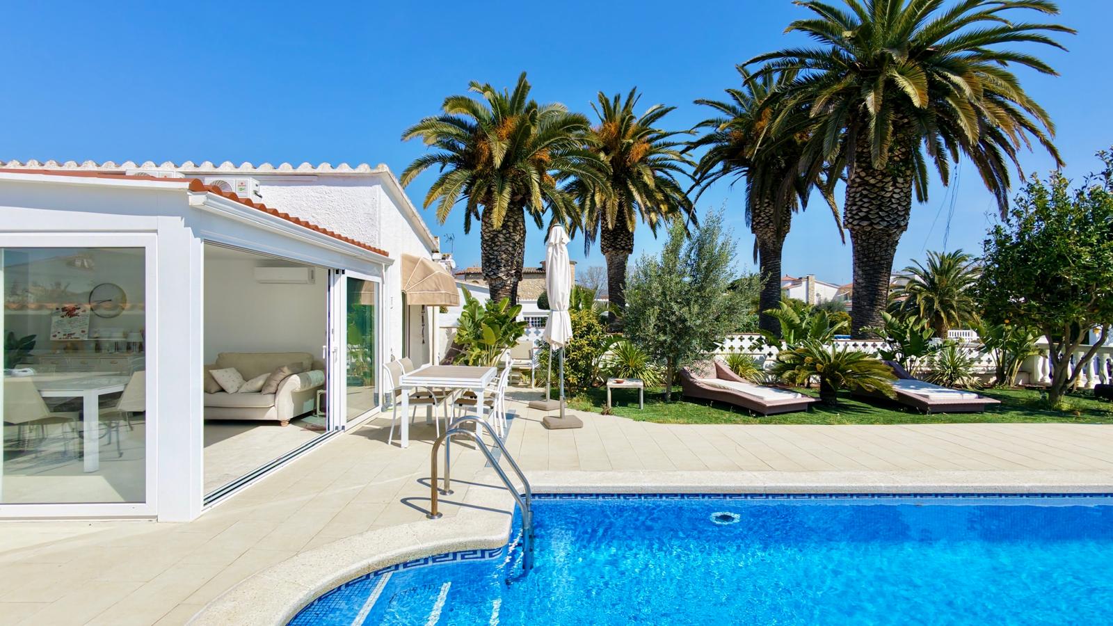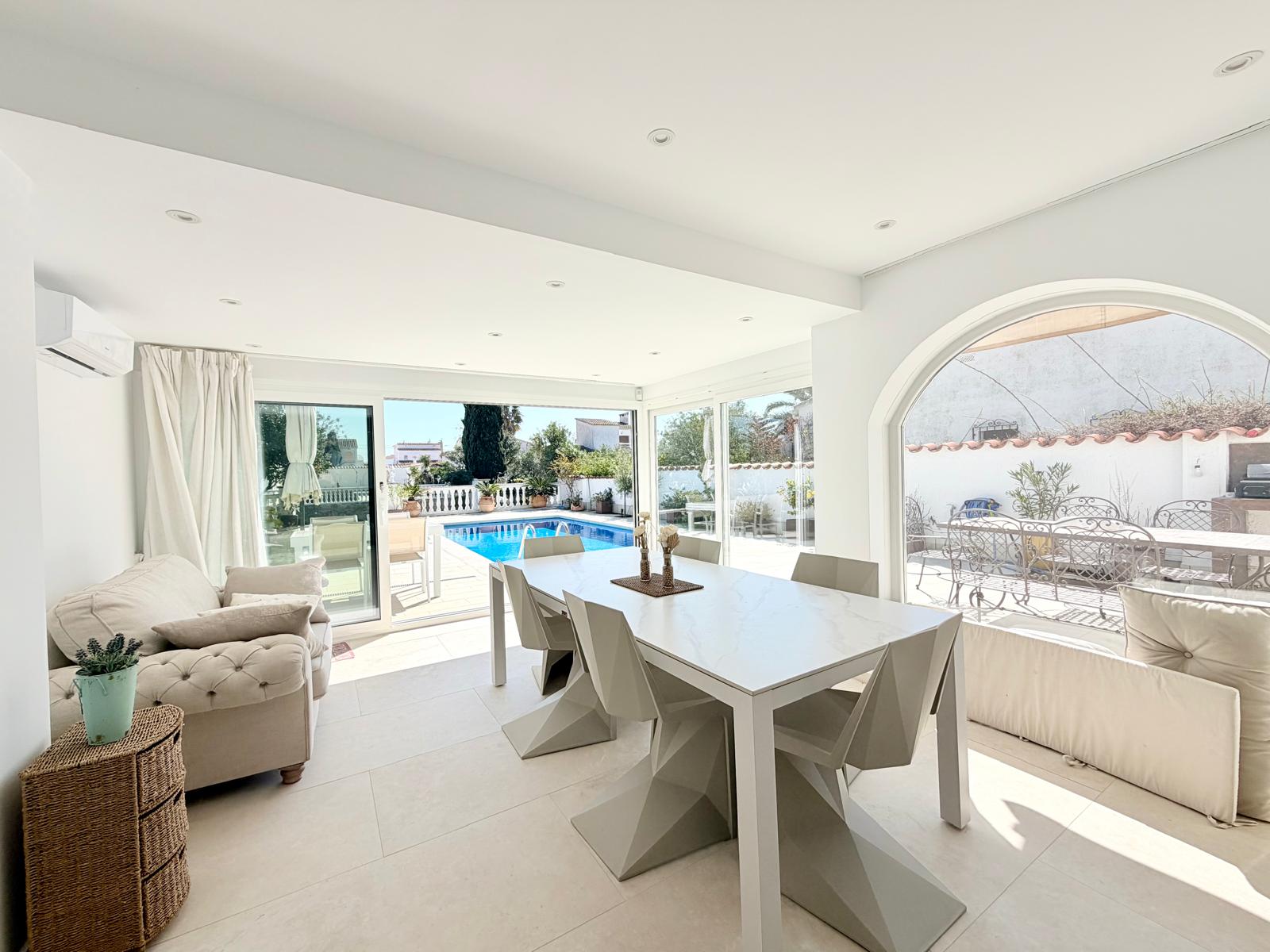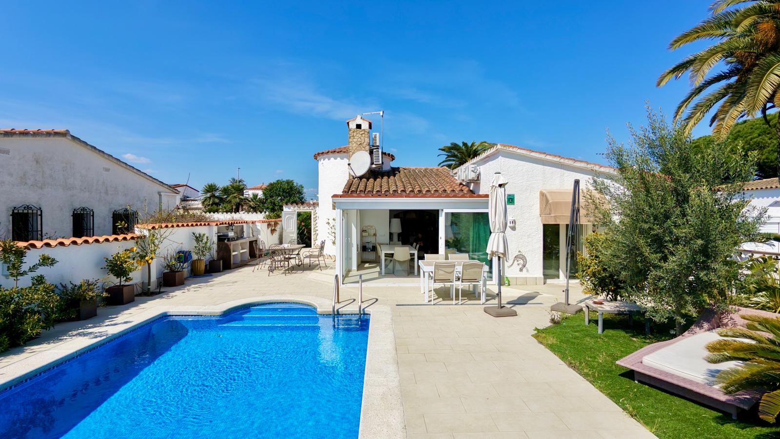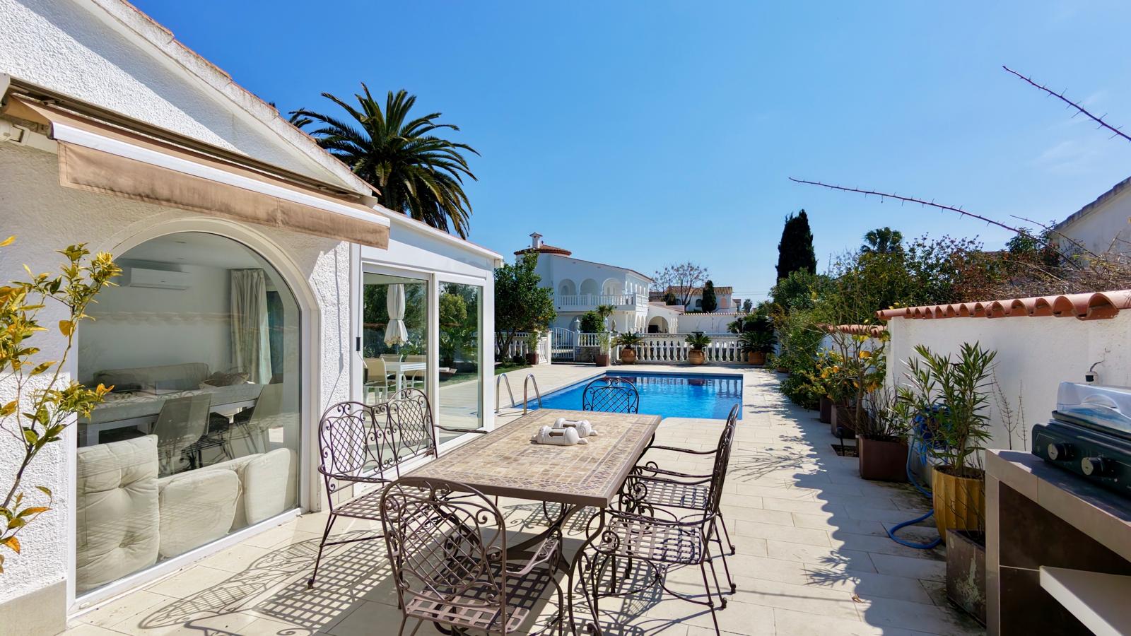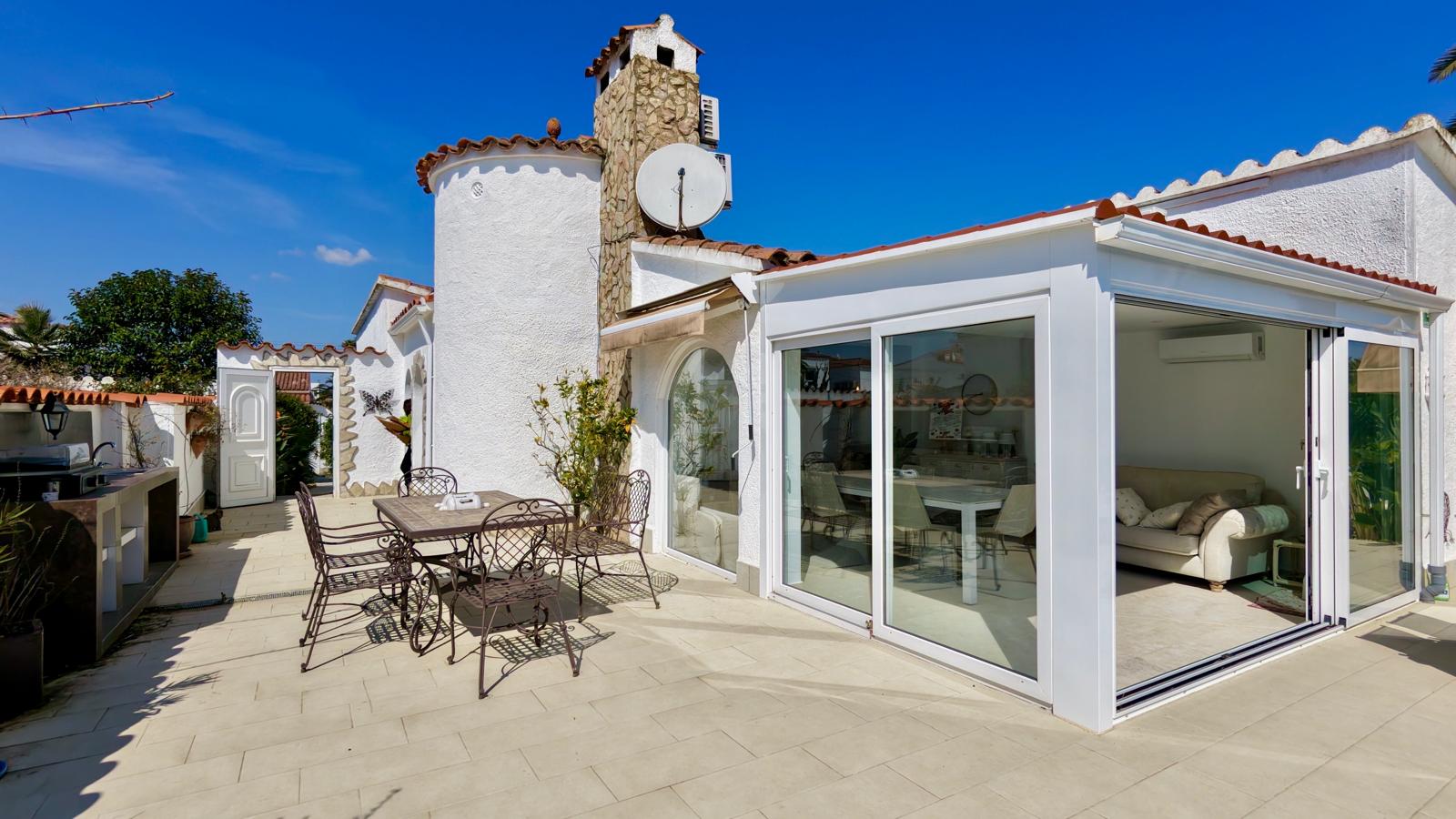 Descubra el auténtico encanto de esta elegante casa, típica del estilo Empuriabrava, idealmente ubicada en un entorno privilegiado. Construida sobre una parcela de 500 m² y con 123 m² de superficie habitable, esta propiedad cautiva de inmediato con su ambiente cálido y sus completas comodidades, incluyendo un amarre privado de 12,5 metros, perfecto para los amantes de la navegación.