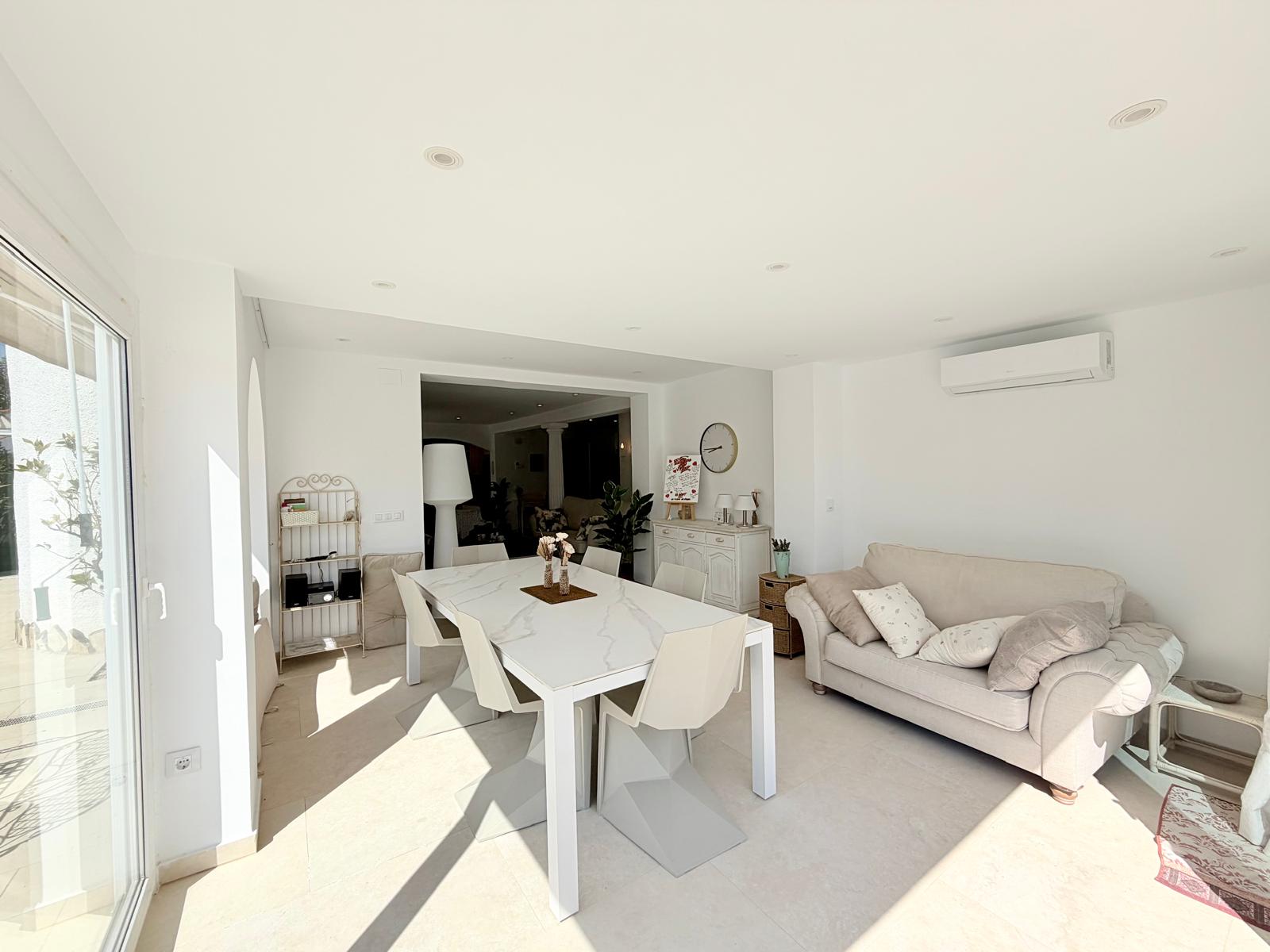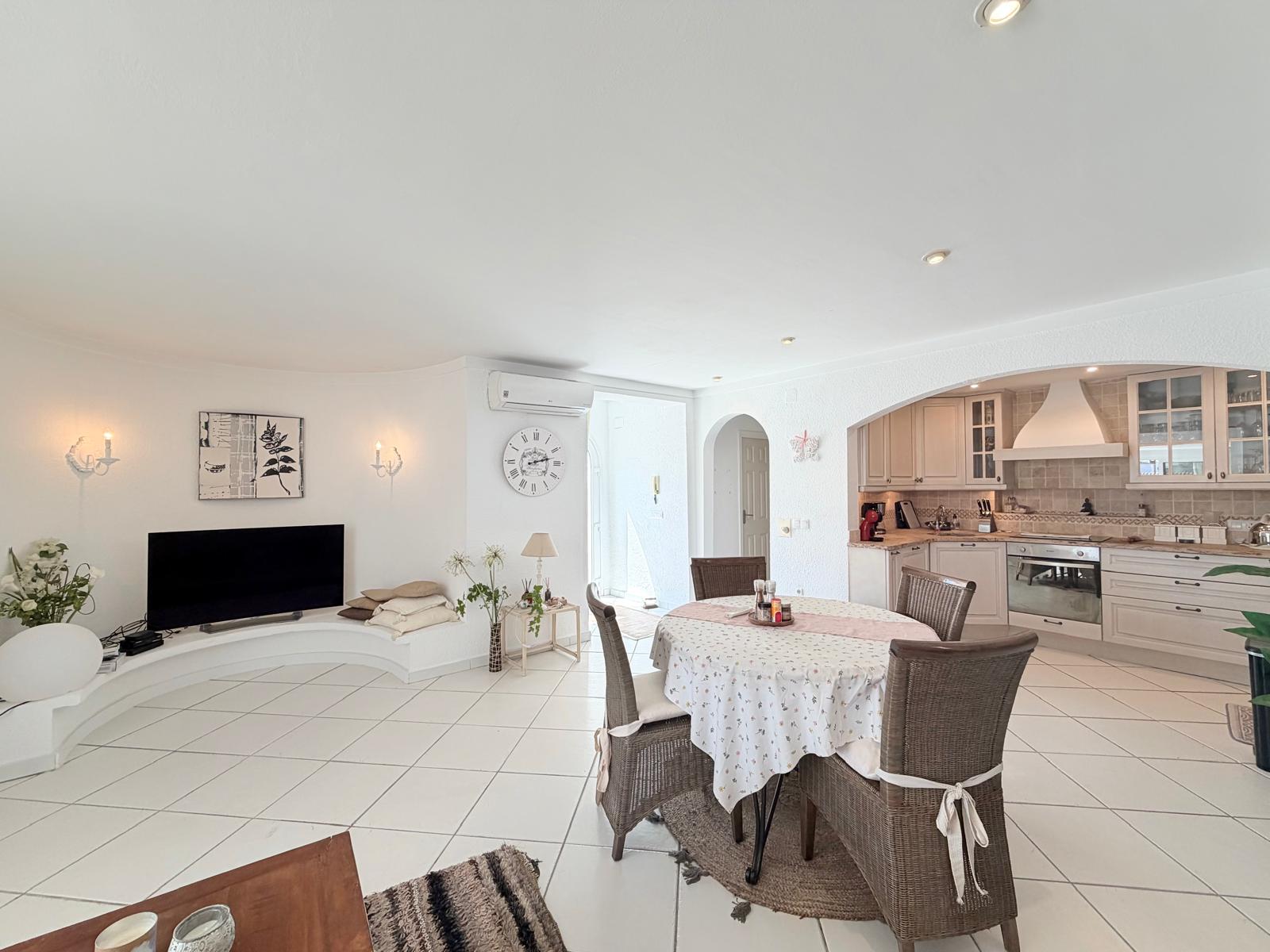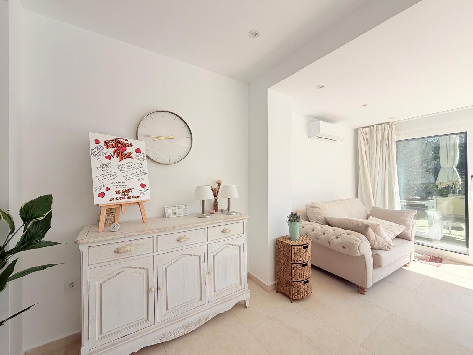 Al entrar, l un agradable y luminoso salón, donde la sala de estar, el comedor y una cocina funcional y acogedora de planta abierta se integran armoniosamente. Este espacio se extiende sin interrupciones hacia una amplia terraza, un verdadero oasis de relajación que ofrece una hermosa continuidad entre el interior y el exterior.