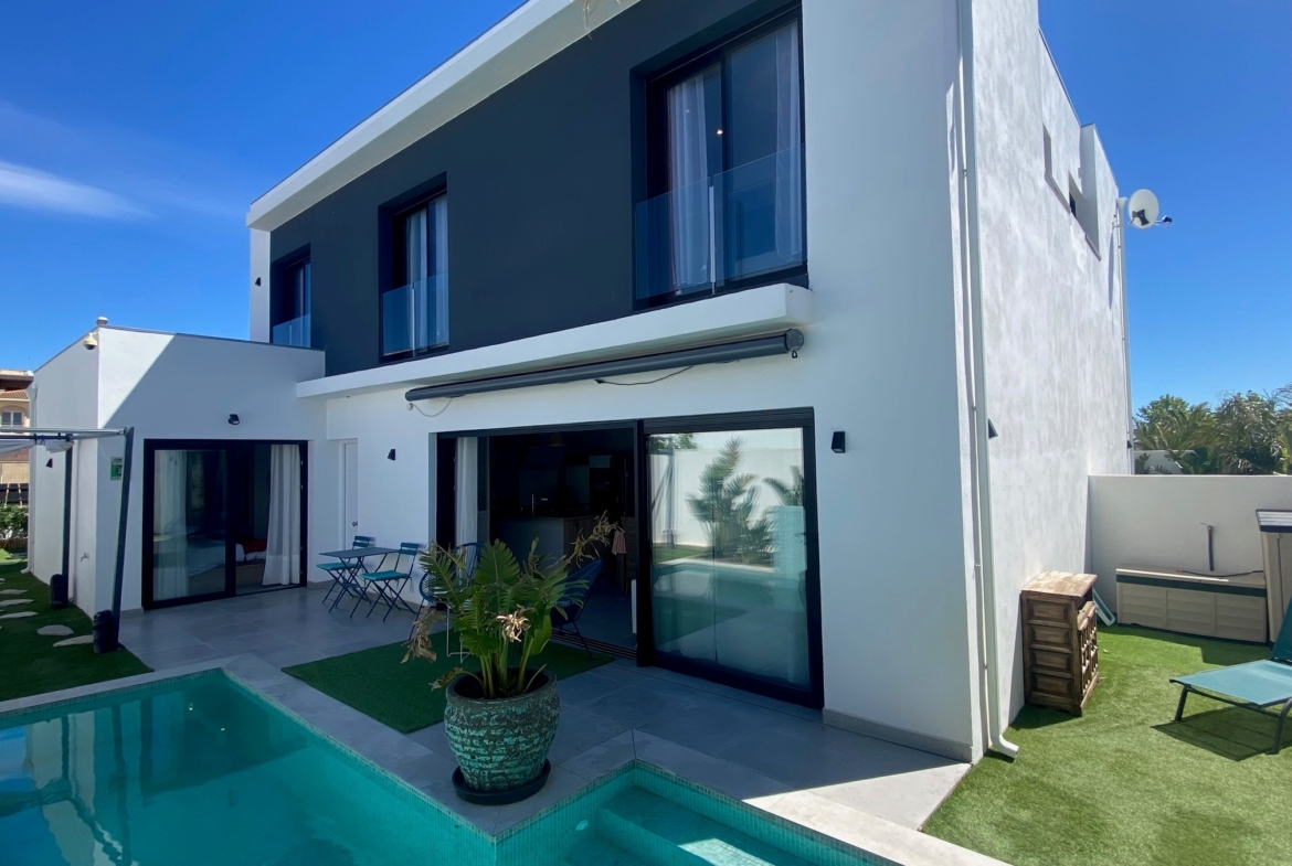 Moderna casa de obra nueva en el sector Mestral de Empuriabrava. Esta casa de 164m2 construida sobre un terreno de 238m2 y cuenta con un gran salón principal con cocina abierta al comedor y sala de estar. Además, tiene una suite en la planta baja con acceso para personas con movilidad reducida, en la primera planta tiene tres dormitorios y dos baños. Dispone de garaje, piscina y terraza además de sistema de calefacción individual y aire acondicionado reversible.