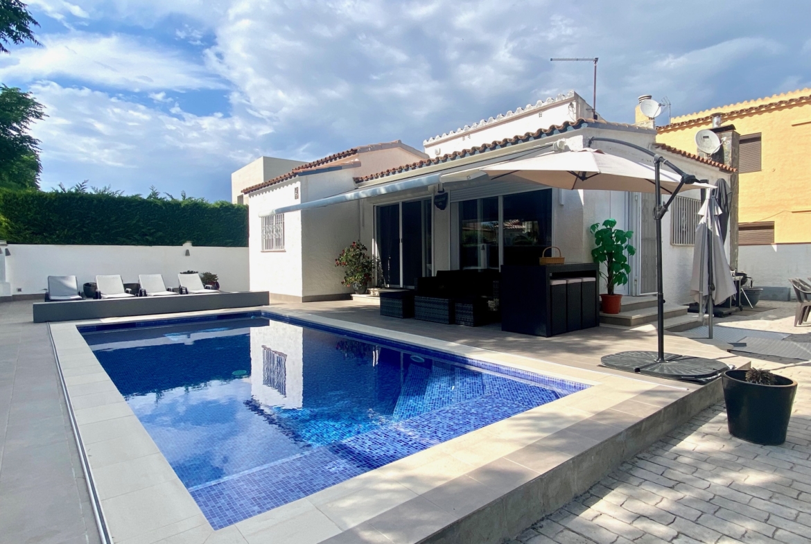Esta bonita casa reformada de 113m2 fue construida en una parcela de 379m2. Dispone de una grande sala de estar con salón, comedor y cocina abierta de madera. Después, encontramos tres dormitorios y dos baños. Esta casa también cuenta con una terraza y una gran piscina con sistema de cobertura automatizado solar. Extras: toldo, aire acondicionado reversible, cristales dobles, y se vende amueblado.