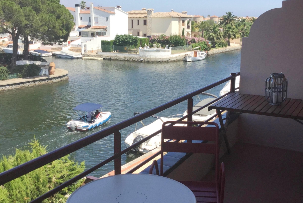Ce bel appartement situé au premier étage d´une copropriété très propre dispose d´une jolie vue sur les canaux et se situe à proximité des commerces. Il se compose d´une pièce de vie principale avec cuisine américaine et séjour / salon donnant sur la spacieuse terrasse. Côté nuit, on retrouve une salle de bains avec armoires encastrées et salle de bain avec machine à laver. Cet appartement est également équipé d´une climatisation et dispose d´une place de parking privée.