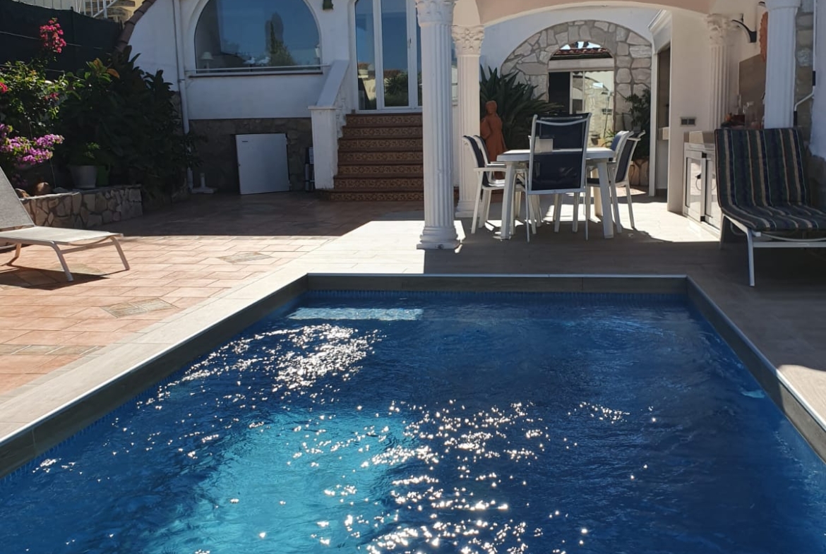 Cette maison se situe sur le canal d’Empuriabrava avec une amarre de 8.50m De plein pied, elle se compose d’un salon – salle à manger, 1 cuisine américaine toute équipée, 2 chambres, 1 salle de bains avec wc, véranda, débarras, terrasse Elle dispose également d’un studio indépendant avec 1 cuisine et une salle de bains avec wc Extra’s: parking, double vitrage, climatisation, chauffage central, sous-sol car construite sur un vide sanitaire. Terrain de 340m2 Superficie de 120m2